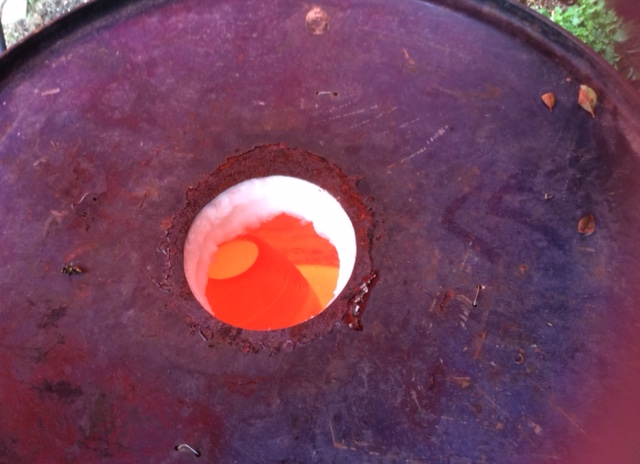 The pot is placed in the RAKU kiln and fired to about 940 degrees Celsius, and then removed from the kiln and placed in a bin with newspapers. The bin is covered and allowed to stand to for around 10 mins. The piece is then removed and the layer of slip and glaze falls away like eggshell and a new pot is born with unique lines and marks where the smoke has penetrated through the cracks in the glaze.